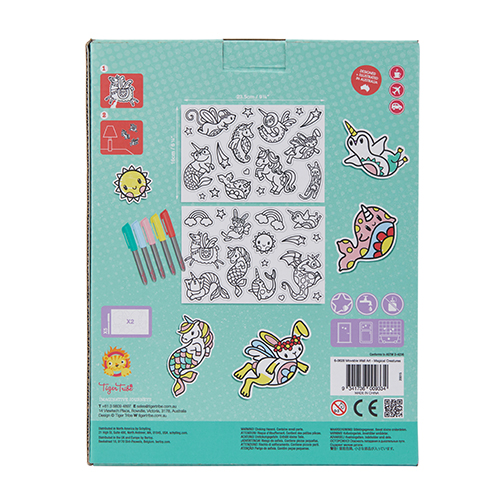 Kids can create colourful wall art (damage free!) with Movable Wall Art – Magical Creatures. Using the markers included, colour magical & mythical creatures, choosing from the playful collection of flying llamas, mermicorns & narwhal illustrations on the Magic Movable reusable stickers.