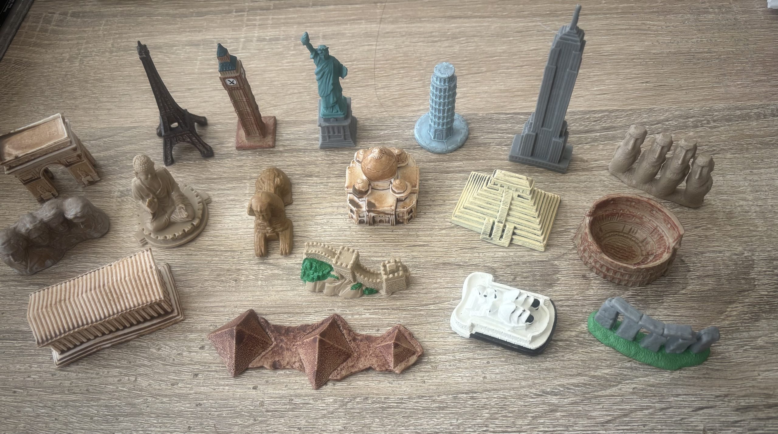 Explore the world’s most famous landmarks with this stunning set of objects. Includes the Leaning Tower of Pisa, Eiffel Tower, Taj Mahal, Arc de Triomphe, Statue of Liberty, Temple of Inscriptions, Pyramids of Giza, Empire State Building, Big Ben, Parthenon, Great Wall of China, Mount Rushmore, Stonehenge, Buddha of Lantau, Easter Island, Sphinx, Sydney Opera House & the Colosseum.