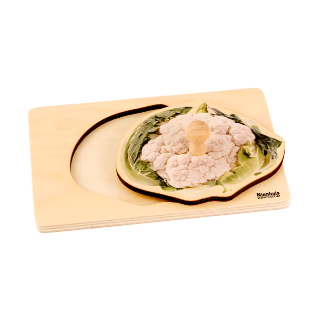 Stimulates language, hand-eye coordination & fine motor skills with realistic images of a cauliflower.